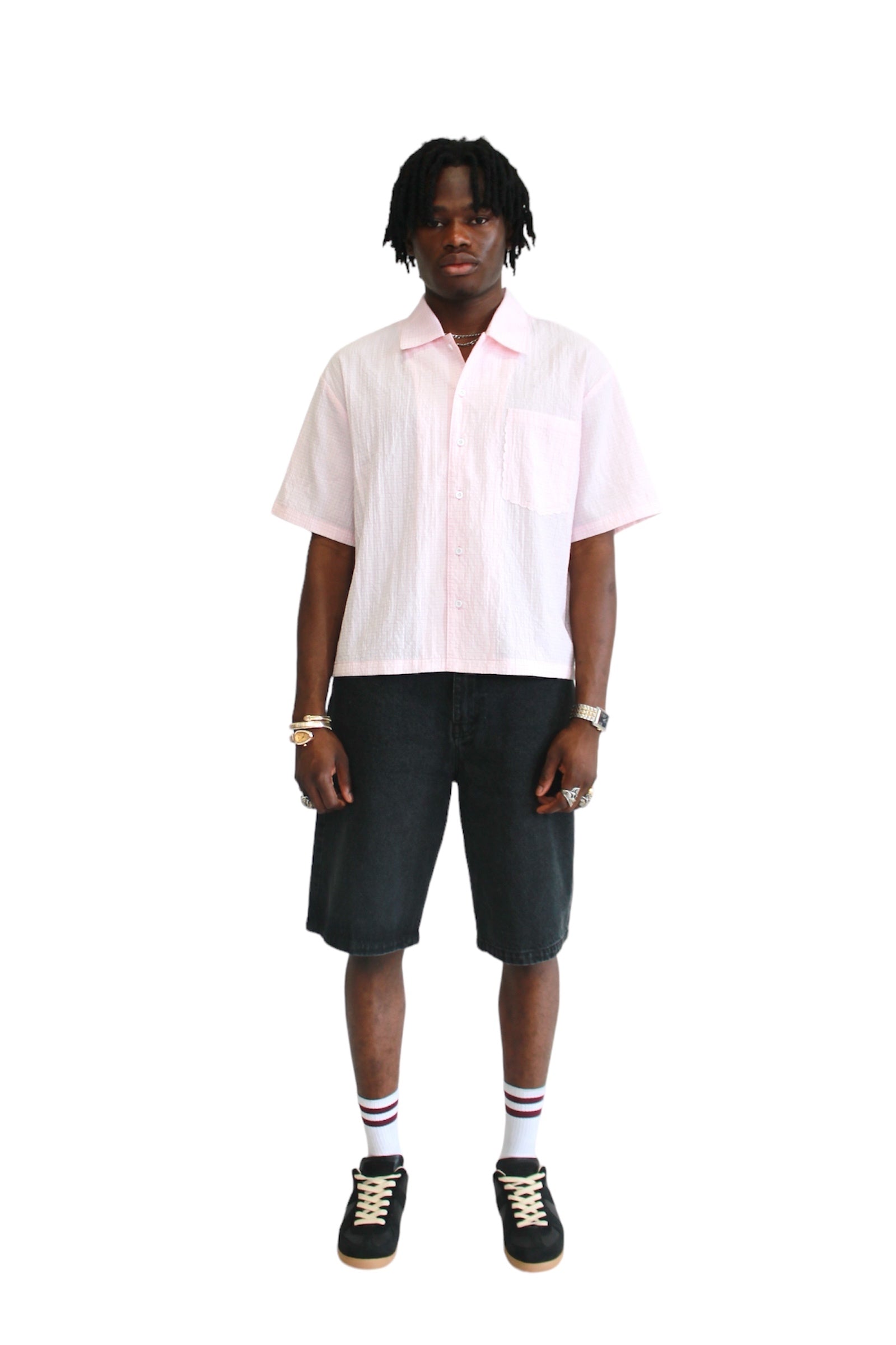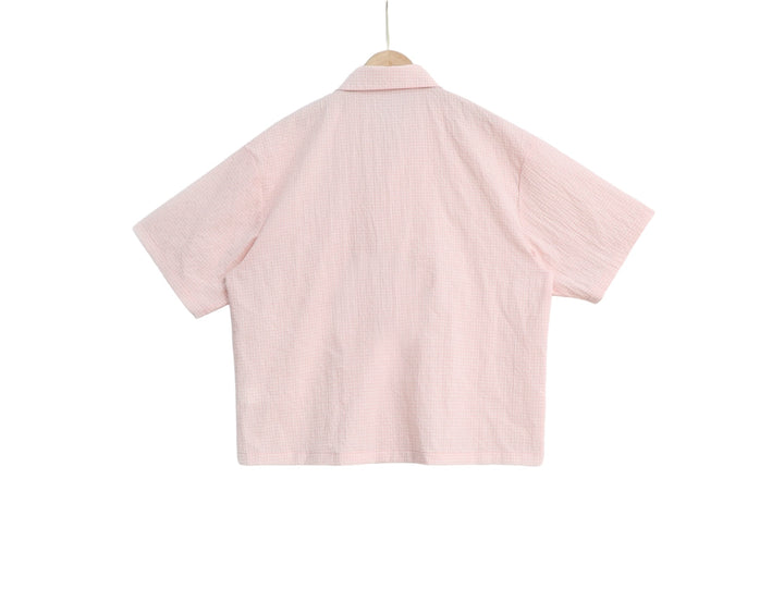 The Pink Patched Button Up is designed with a boxy fit and lightweight fabric for a comfortable and stylish look. With unique patch details and oversized sleeves, this shirt is perfect for a casual yet trendy outfit. Upgrade your wardrobe with this versatile piece.